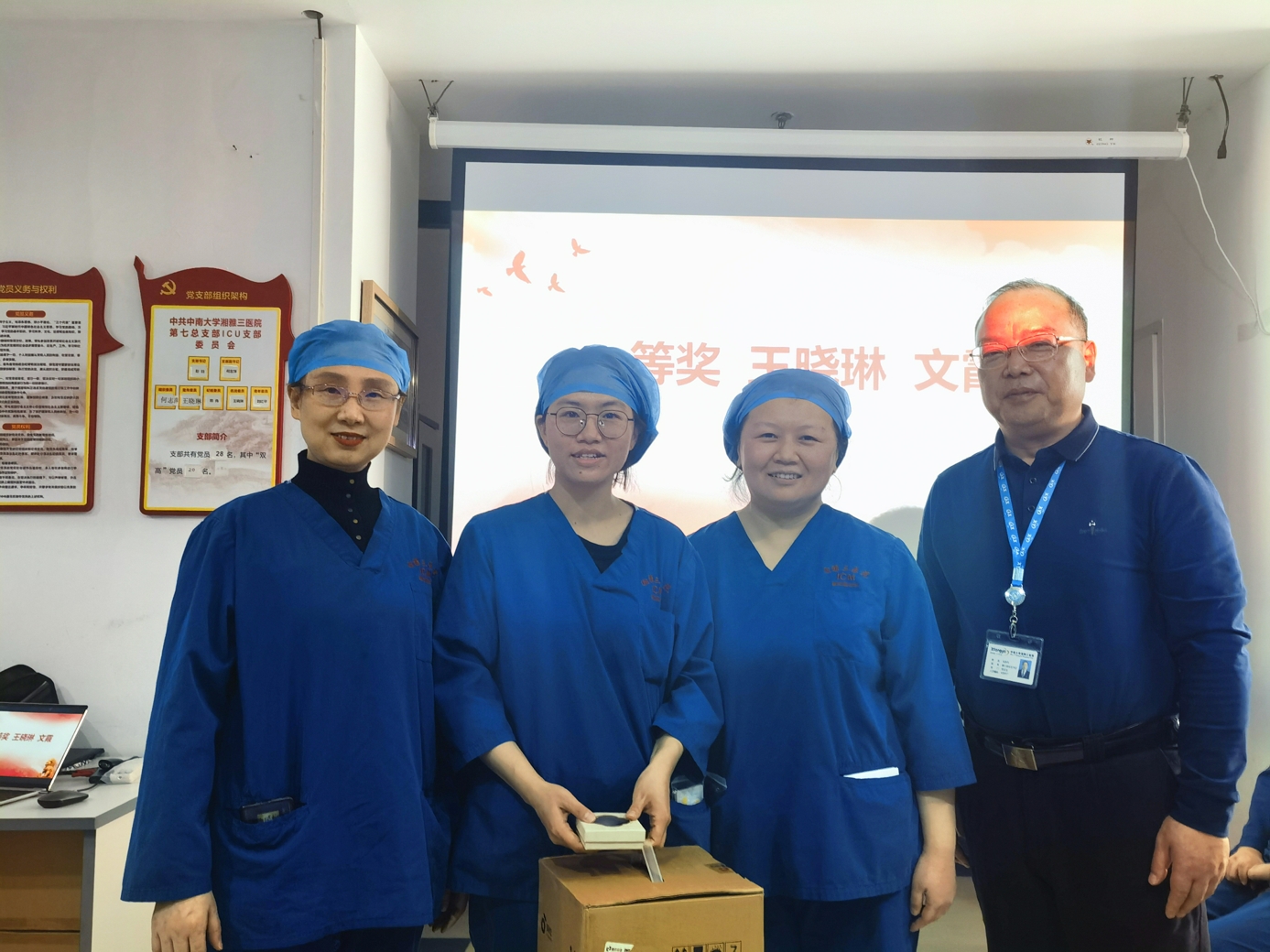 2024年1月3日下午,中南大学湘雅三医院第七党总支重症医学科党支部召开“廉政文化艺术之风”创作赛总结表彰会。第七党总支书记毛赤丹、重症医学科主任何智辉出席会议,会议由重症医学科党支部书记彭玥主持,科室全体党员、比赛获奖作品创作者代表参加。
