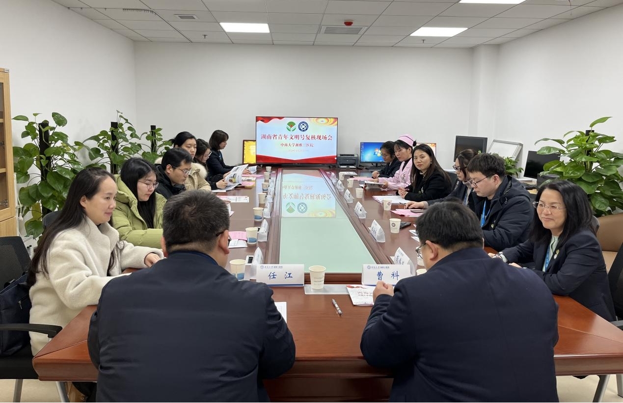 2月27日下午,团省委湖南省青年文明号复核认定评审组一行前来检查指导湘雅三医院门诊部青年文明号创建工作,并进行现场复核。复核评估组由团省委青年发展部、长沙海关、共青团常德市委等单位代表组成,医院党委委员、副院长曹科陪同,门诊部主任彭伟莲、团委书记程海威、门诊部副主任薛娟、团委副书记戴萍萍、门诊护理单元护士长肖秀珍、门诊部青年文明号号长陈娟及相关青年代表参加。