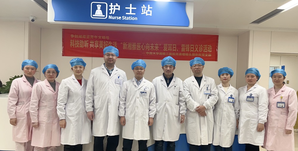 在第25个全国爱耳日到来之际,中南大学湘雅三医院耳鼻咽喉头颈外科响应号召,秉持“科技助听 共享美好生活”的宣传理念,于3月2日上午举行了一场特别的义诊活动。在卿翔副教授和李维副研究员的带领下,伍美芳听力师的专业协助下,科室10余名医护人员为接诊的患者提供了全方位的听力健康服务。