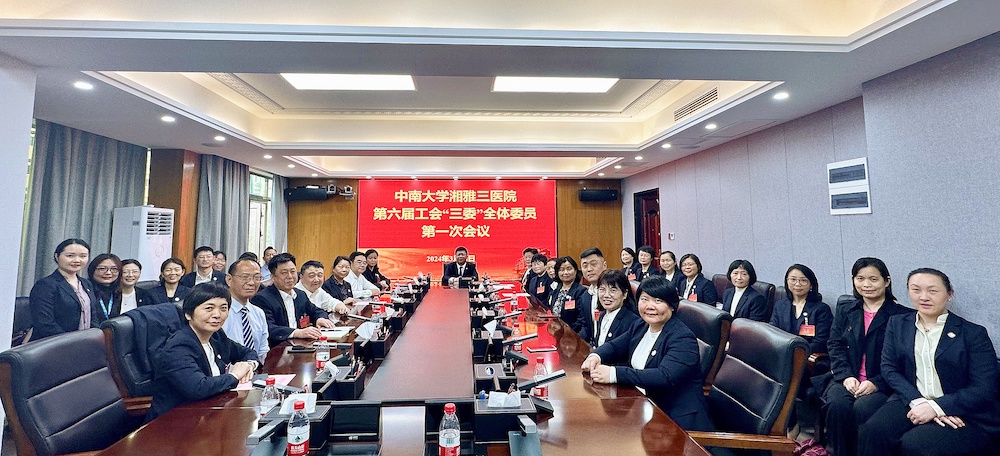 3月23日,中南大学湘雅三医院第六届一次教职工、工会会员代表大会暨2024年医院工作会议在急诊楼五楼报告厅隆重举行,大会选举产生新一届工会委员会委员、工会经费审查委员会委员和工会女职工委员会委员。会后,湘雅三医院第六届工会“三委”委员召开了第一次会议,杨飞龙同志当选新一届工会主席,熊晓云同志当选新一届工会常务副主席,佘彩婷同志、文子祺同志当选新一届工会副主席,朱锐同志当选新一届工会经费审查委员会主任,佘彩婷同志当选新一届工会女职工委员会主任。