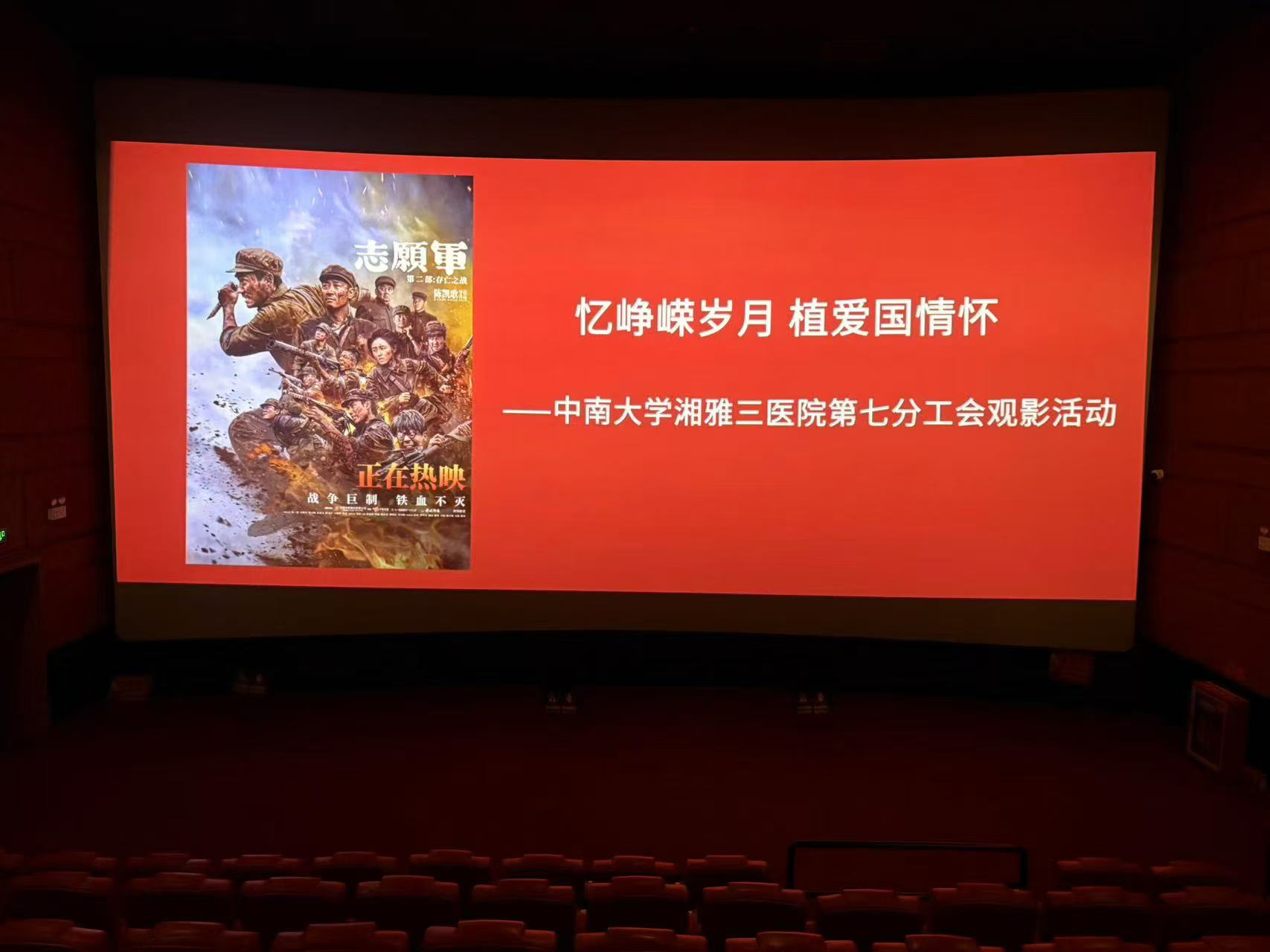 为铭记历史、砥砺前行,进一步激发医务人员的爱国情怀和使命担当,11月13日晚,中南大学湘雅三医院第七分工会开展“忆峥嵘岁月植爱国情怀”观影活动,组织医务人员观看红色电影《志愿军:存亡之战》。此次观影活动旨在通过银幕上的历史画卷,带领会员们重温那段峥嵘岁月。