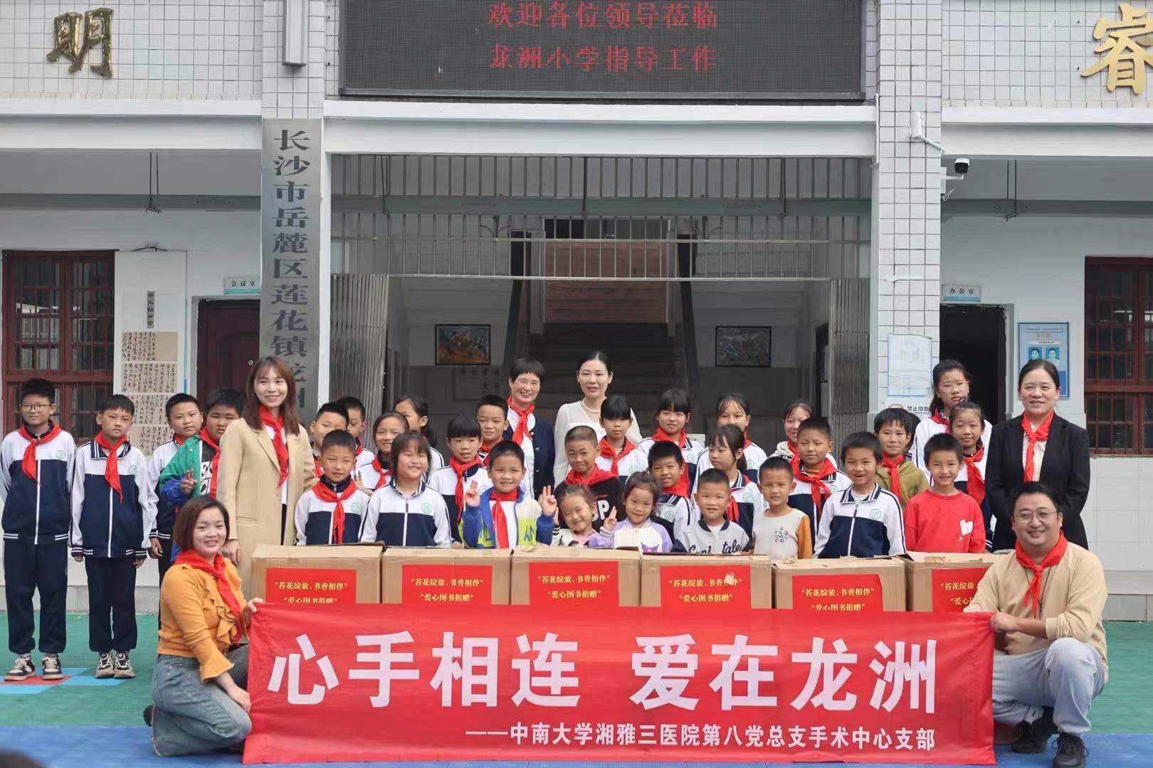 2024年11月15日,湘雅三医院手术中心党员代表组成的爱心团队前往莲花镇龙洲小学,为那里的留守儿童送上了一份温暖的爱心捐赠。