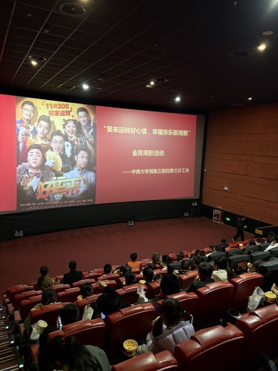为更好地丰富会员生活,缓解医务人员工作压力,12月11日晚,中南大学湘雅三医院第三分工会开展主题为“笑来运转好心情,幸福快乐新湘雅”的观影活动,分工会的200余名职工会员在长沙河西王府井卢米埃影城观看喜剧电影《好运来》。