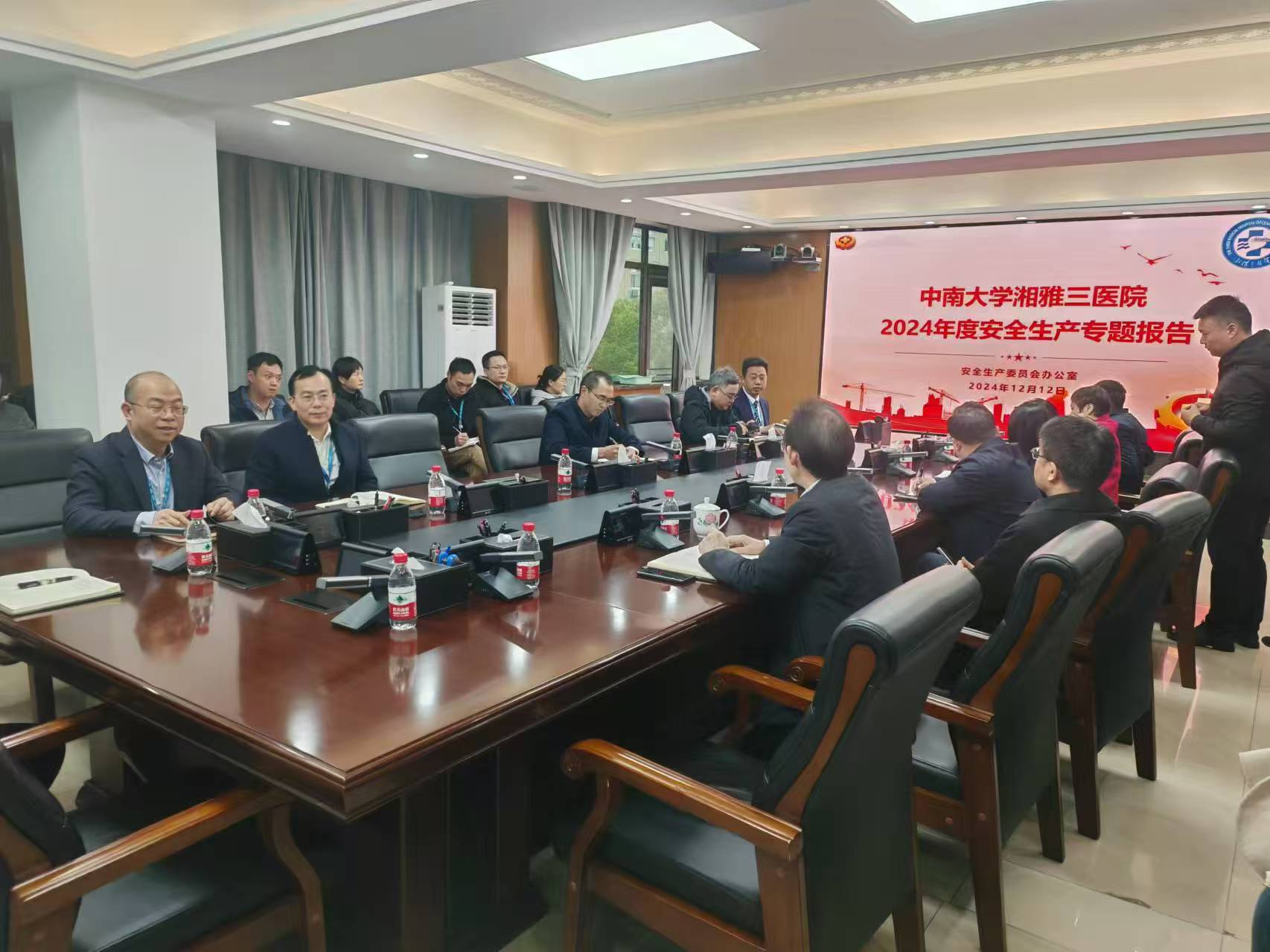 12月12日下午,中南大学湘雅三医院安全生产工作专题会议在综合楼一会议室召开。会议的主要任务是进一步强化医院安全生产管理体系,全面排查并防范医院安全生产、消防安全、危化品、建筑物、违规用电、信息安全等方面风险隐患,进一步压实各职能部门的安全职责,确保患者的生命健康以及医院的长远发展。院长江泓及在院院领导出席,安全保卫部、后勤保障部、基建办、医务部、护理部、科研部、病理科、检验科、产科等23个职能部门、临床医技科室列席会议。会议由党委委员、副院长欧阳文主持。