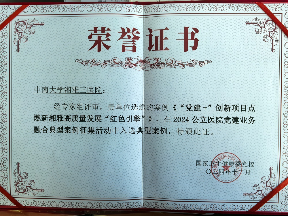 2024年12月14-15日,“2024公立医院发展策略研究南京会议暨公立医院党建业务融合典型案例征集评审会”在南京鼓楼医院召开。国家卫生健康委党校党委书记周美林宣布典型案例入选名单。由中南大学湘雅三医院选送的案例《“党建+”创新项目点燃新湘雅高质量发展“红色引擎”》成功入选。