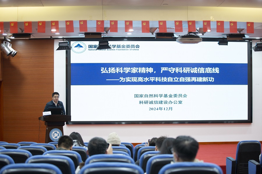 叶正科以《弘扬科学家精神,严守科研诚信底线——为实现高水平科技自立自强再建新功》为题为大家做了专题报告,报告介绍了科学基金学风建设行动计划和“教育、激励、规范、监督、惩戒”五位一体科学基金科研诚信体系建设内容,分享了强化监督检查、加强科研资金使用监管、提升资金使用效能方面的具体举措,重点就全球多起撤稿事件、国内重大学术不端事件、论文工厂买卖等方面强调了科研活动中科研诚信的重要性和必要性。他以多种学术不端行为、经费使用问题的典型案例为切入点,总结了近年监督检查中涉及的主要问题,强调加强学风建设的重要性,他着重讲解了科研失信行为易发多发环节及具体表现,指出科研人员一定要做“负责任的创新”,并分享了强化监督检查、提升资金使用效能的系列举措。最后,他勉励各位科研人员要践行科研诚信、弘扬科学家精神,构建良好科研创新生态。