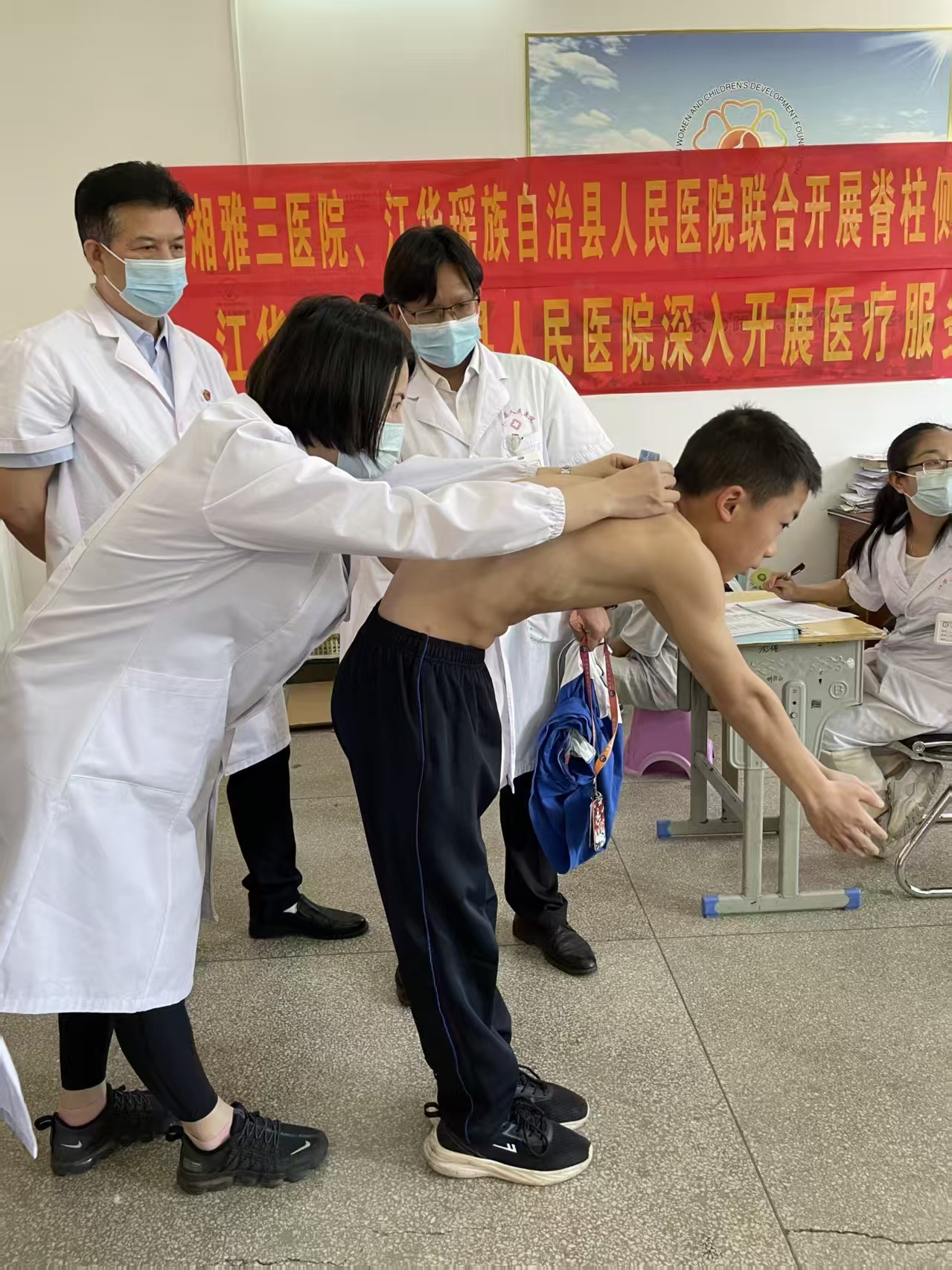 5月13日,康复科专家团队联合江华瑶族自治县人民医院走进江华瑶族自治县创新实验学校,开展“关爱脊柱健康,护航青春成长”公益筛查活动,为在校学生提供专业、便捷的脊柱健康评估服务,提升基层脊柱侧弯早期筛查与防治能力。