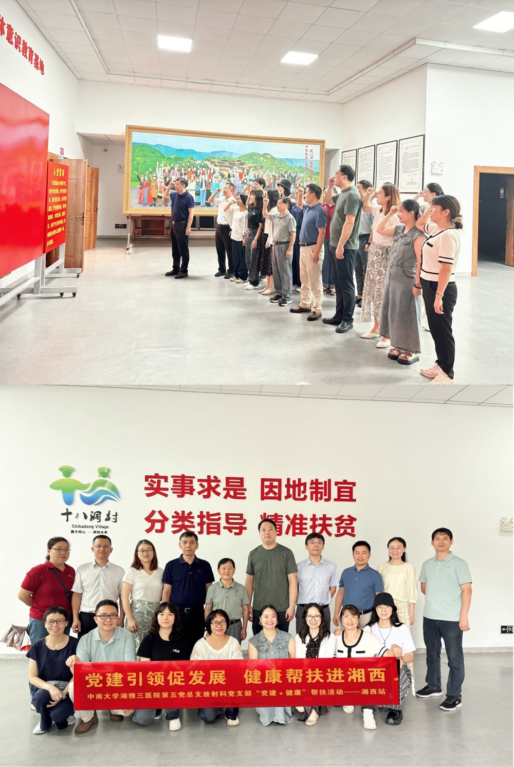 14日,全体党员前往“精准扶贫”首倡地——花垣县十八洞村开展现场教学。在精准扶贫展厅,中南大学湘雅三医院副院长、放射科党支部书记容鹏飞带领全体党员庄严列队,重温入党誓词。铿锵有力的誓言再次坚定了每一位共产党员的初心与使命,激发了大家立足岗位、奋发作为,继续为健康中国和乡村振兴贡献力量的决心。