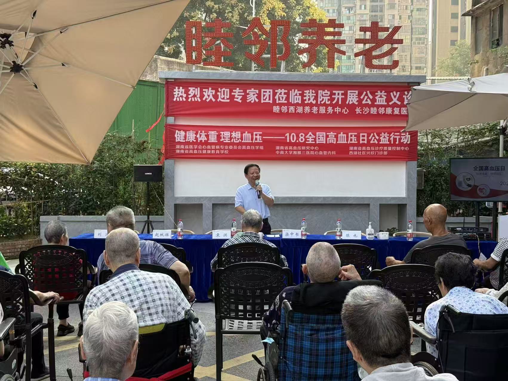 2025年10月8日是第28个全国高血压日。10月9日,中南大学湘雅三医院心血管内科积极响应“健康体重·理想血压”的号召,在湖南省医学会心血管病专业委员会高血压学组、湖南省高血压研究中心、湖南省高血压诊疗质控中心、湖南省高血压健康教育学校的支持下,联合长沙市岳麓区西湖社区兴欣门诊部,在睦邻康复养老中心开展健康教育、义诊及免费咨询公益活动。活动吸引了近100名社区居民参与,现场氛围热烈,得到了社区居民的广泛好评。活动由湘雅三医院主任医师、湖南省心血管病临床医学和高血压研究中心主任袁洪和心血管内科主任蒋卫红共同组织。