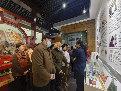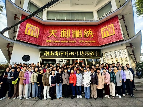 湘绣是中国四大名绣之一,是中国首批国家级非物质文化遗产项目。上午湘绣是中国四大名绣之一,是中国首批国家级非物质文化遗产项目。上午10时许,老同志们一行抵达沙坪湘绣博物馆。该馆是为保护和传承非物质文化遗产,振兴和展示沙坪湘绣产业而建立的,被省文物局授予“湖南省首批民办博物馆”称号。老同志们跟随讲解员走进展厅,了解湘绣相关知识,近距离鉴赏经典作品,从中品味独具魅力的湘楚文化。“一口银针十枝玉指百束锦丝,弘扬绣乡千年传统;三湘夸颂四海称荣五洲赞誉,织就人间万物风华。”在解说员的带领下,一件件精妙绝伦的湘绣作品映入眼帘,花鸟、山水、人物等各类绣品的精湛工艺和独特风格让大家赞不绝口。参观学习中,大家领略了湘绣文化的历史与传承,体悟了绣道文化中“惟精惟一”的文化精髓,对湖湘文化“百折不挠”“敢为人先”等精神有了更加深入的理解。