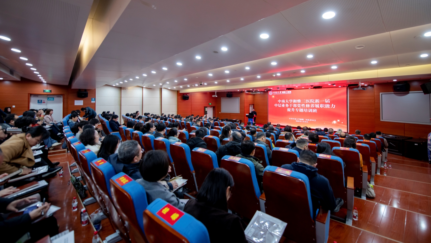 为切实提升医院中层业务干部的党性修养、管理能力和履职本领,锻造一支“政治强、专业精、善管理、敢担当、作风正”的业务干部队伍,为医院高质量发展提供坚实支撑,2026年1月10日,医院举办新一届中层业务干部党性修养与履职能力提升专题培训班。全体院领导为业务干部锤炼党性修养、提升管理能力“赋能强基、补钙铸魂”。开班式由医院党委副书记杨飞龙主持。