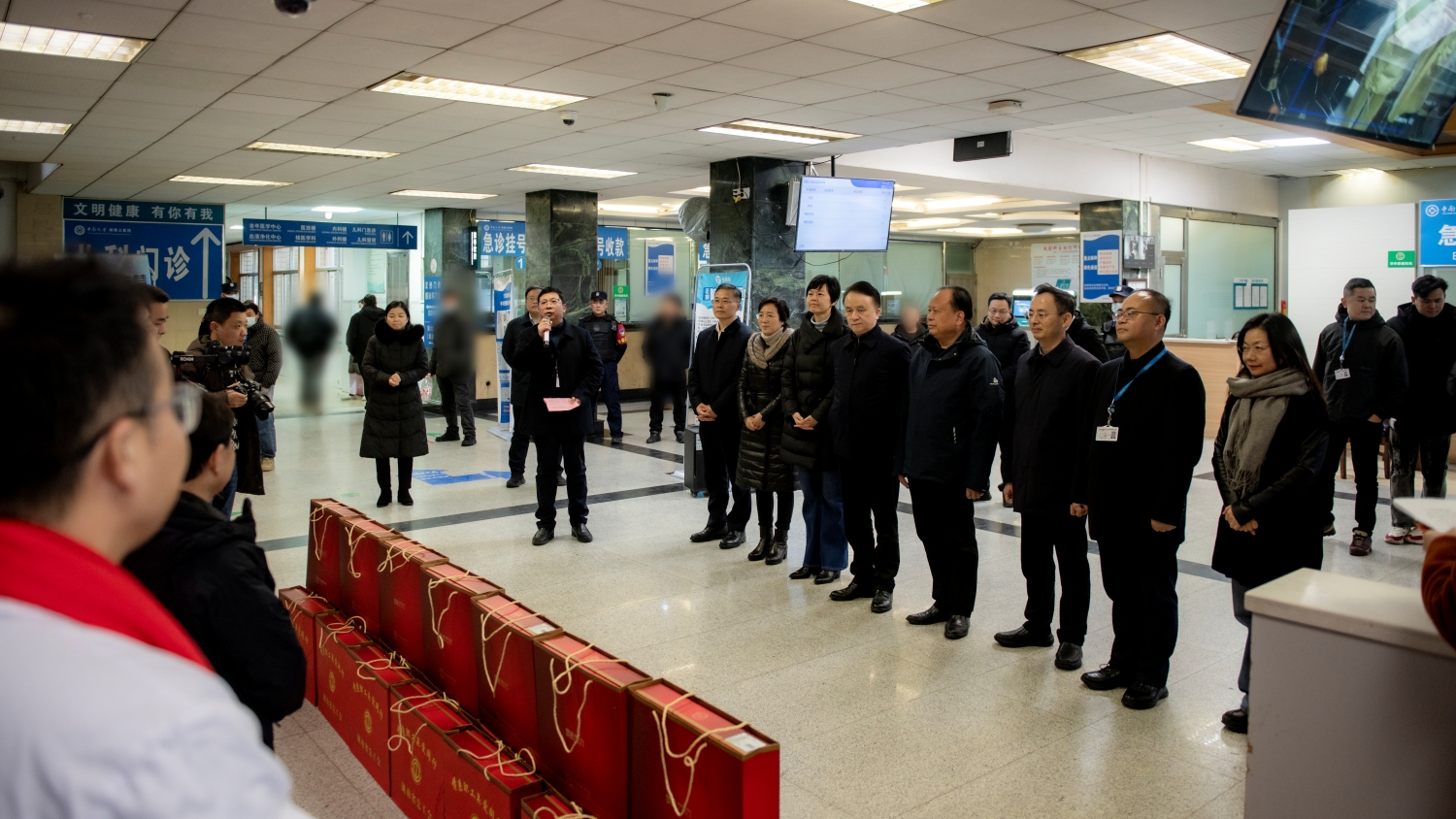 慰问活动由杨飞龙主持。他代表全院职工对慰问组的到来表示热烈欢迎和衷心感谢,并表示:“省总工会在严寒时节送来温暖,既是对一线医务工作者坚守岗位的真挚问候,更是对大家践行医者使命的莫大鼓舞。我们将把这份关怀转化为护佑人民群众健康的不竭动力。”