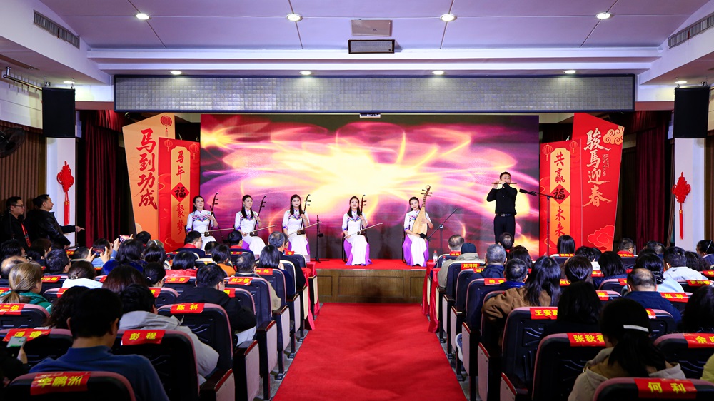 团拜会上进行了精彩的文艺表演,注入了浓浓的年味与温情。由医院工会美育合唱团带来的合唱《如愿》,深情地唱出了对家国安康、梦想成真的美好祈愿;经典旋律《不忘初心》唤起全体湘雅人守护人民健康的崇高使命,将活动推向高高潮。舞蹈《春晖丽影》表达着医务工作者刚柔并济、仁心仁术的动人姿态,民乐合奏《浏阳河+赛马》将湖湘韵味的悠扬与策马奔腾的激昂融合,寓意医院马年充满开拓进取的活力。