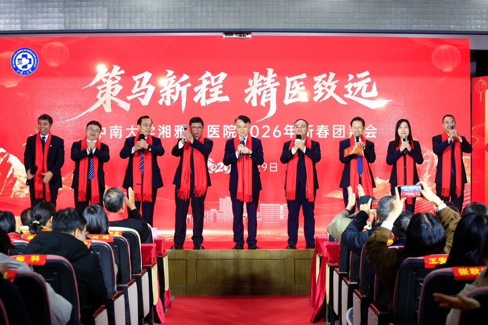 何庆南代表医院党委,向全院干部职工、离退休老同志及家属致以诚挚问候,并系统回顾了过去一年医院发展成就,擘画了未来奋进蓝图。他指出,2025年是医院砥砺前行、成果丰硕的一年。全院坚持以习近平新时代中国特色社会主义思想为指导,践行“人民至上、生命至上”宗旨,在党建引领、医疗服务、科教人才、社会贡献、群团建设等方面取得全面进步。展望2026年,他强调,全院要以“十五五”规划开局为契机,保持战略定力,坚持稳中求进,要在“强党建”上持续深化,营造山清水秀的政治生态;在“优服务”上精准施策,筑牢安全底线和提升患者体验;在“精学科”上重点突破,构筑创新发展高地;在“细管理”上提质增效,提升运营效率与发展韧性;在“育文化”上凝聚共识,凝聚高质量发展合力。他号召,全体“新湘雅人”以龙马精神奋楫争先,在并肩前行中汇聚向前、向上、向未来的澎湃力量,共同书写医院高质量发展辉煌灿烂的新篇章。
