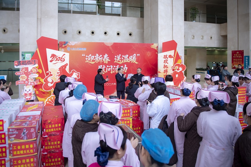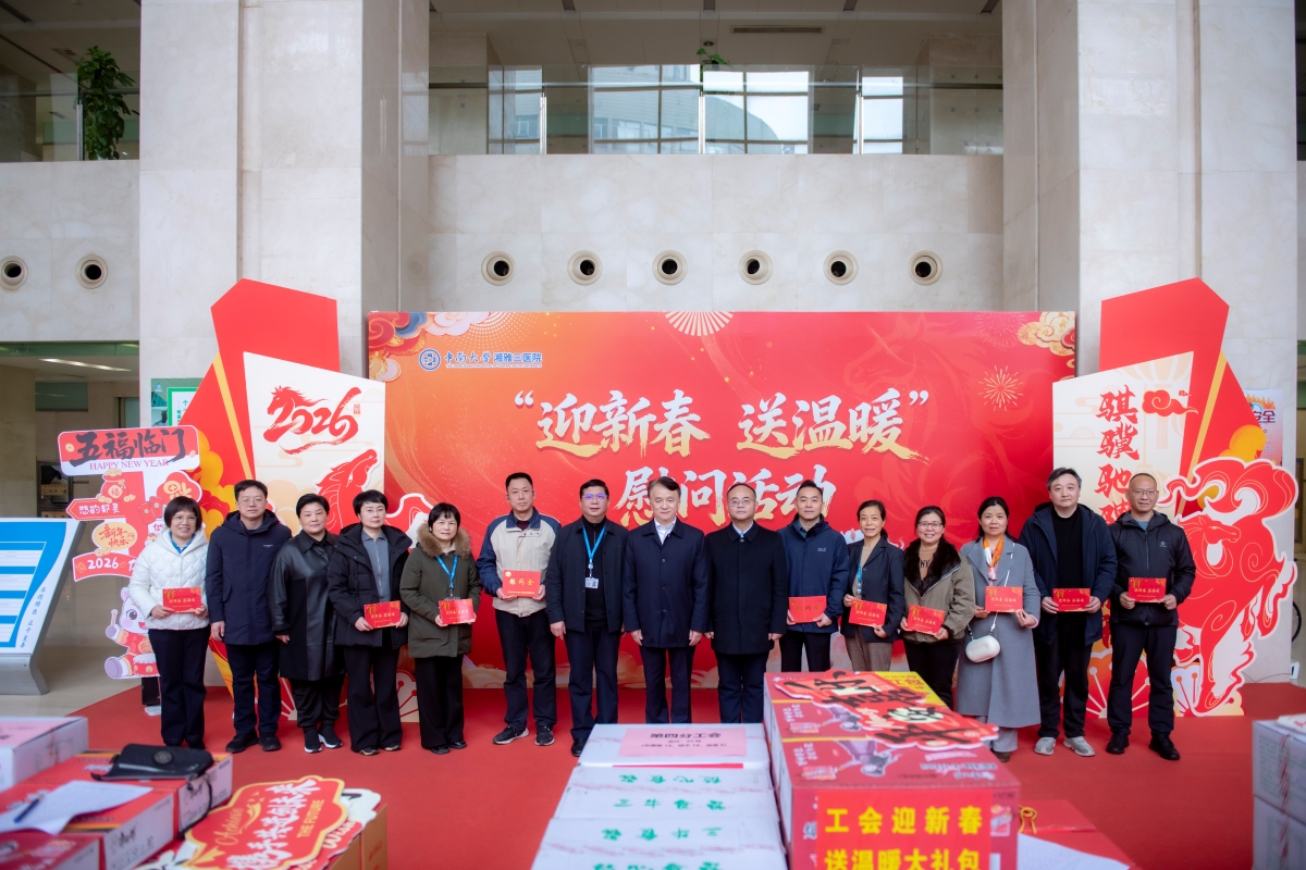 岁暮冬寒,年味渐浓,马年新春的脚步悄然临近。为让全院职工真切感受到医院大家庭的温暖与牵挂,把新春的美好祝福和贴心关怀送到每一位职工心坎上,2月12日上午,中南大学湘雅三医院在外科楼一楼大厅温情开展“迎新春 送温暖”慰问活动,以浓浓关怀凝聚奋进力量,共迎新春、同赴新程。医院党委书记何庆南,院长江泓,党委副书记、工会主席杨飞龙出席活动,医院党委办公室、院长办公室、院工会相关负责人,各分工会主席、各工会小组长等120余人共同参与,活动由杨飞龙副书记主持。