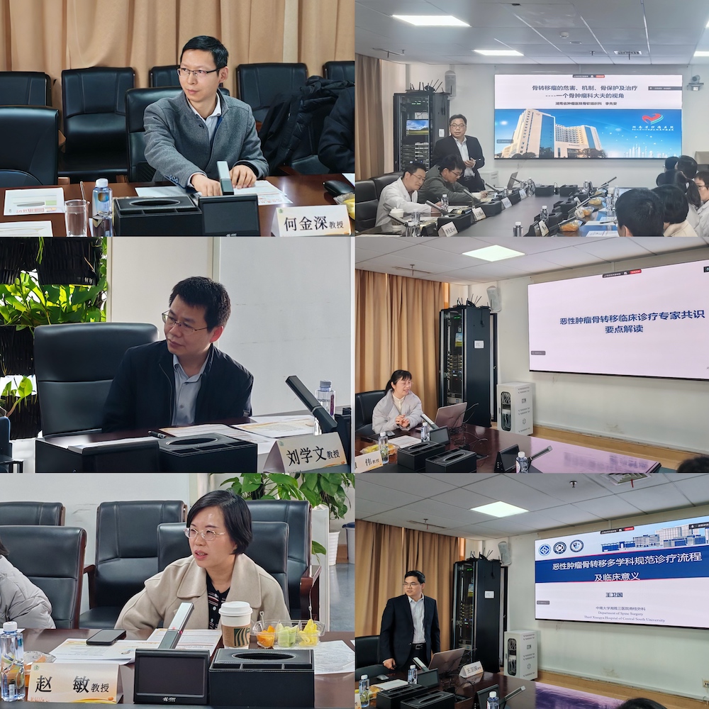3月4日,肿瘤骨转移规范化诊疗MDT研讨会在中南大学湘雅三医院外科楼19楼会议室召开。会议聚焦肿瘤骨转移诊疗关键问题与前沿方向,汇聚多学科专家开展学术交流与临床研讨,推动肿瘤骨转移诊疗标准化、规范化、精细化发展。