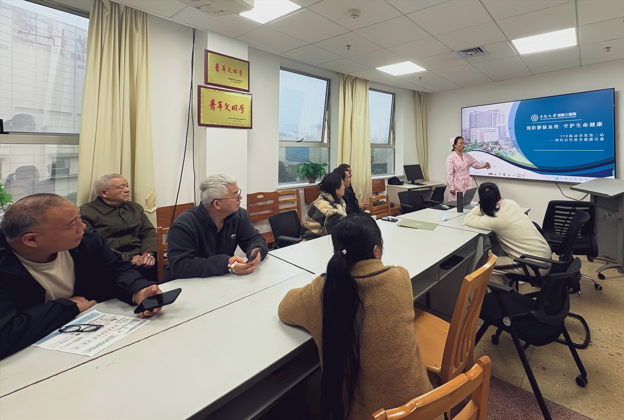 为深化静脉血栓栓塞症(VTE)防治工作,提升高危人群自我防护意识,3月26日下午,湘雅三医院VTE防治护理小组在神经内科病区开展了一场以“预防静脉血栓 守护生命健康”为主题的患者健康教育活动。活动由主管护师周玲担任主讲,吸引了众多患者及家属积极参与。