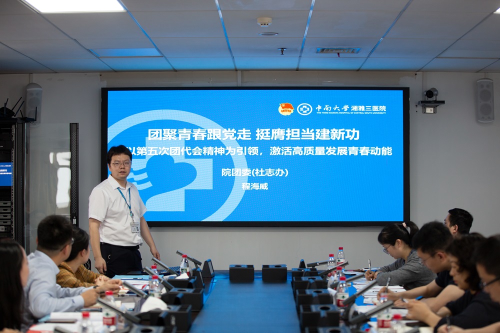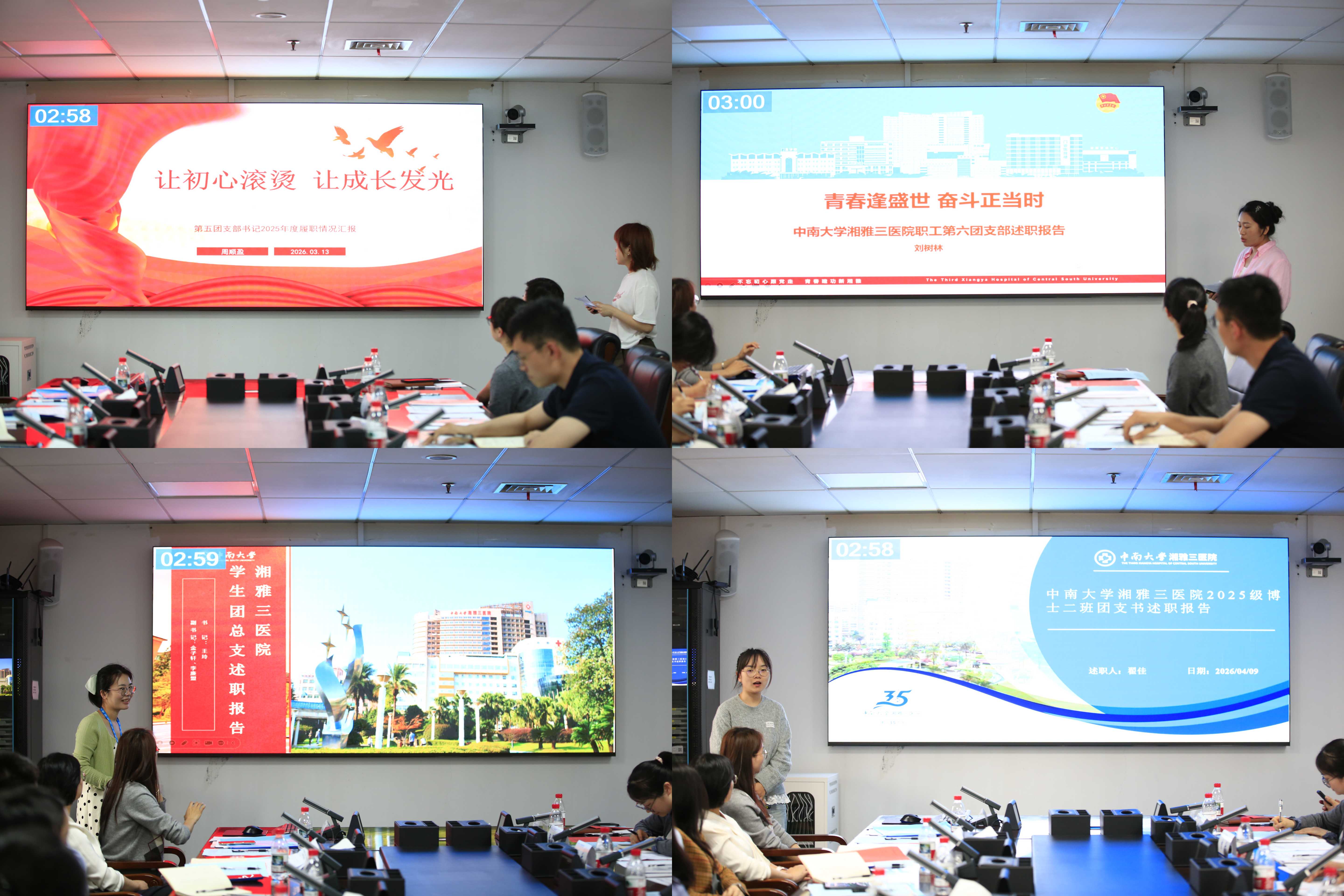 4月9日,为进一步加强基层团组织建设,总结和部署医院共青团工作,增强团组织吸引力、凝聚力和战斗力,中南大学湘雅三医院团委在外科楼19楼会议室召开团组织负责人述职评议会暨2026年上半年工作部署推进会。医院党委委员、副院长曹科出席,全体团委委员、职工团支部(学生团总支)书记、部分学生团支部书记,各片区团干、团员、青年代表参加会议。会议由医院团委书记程海威主持。