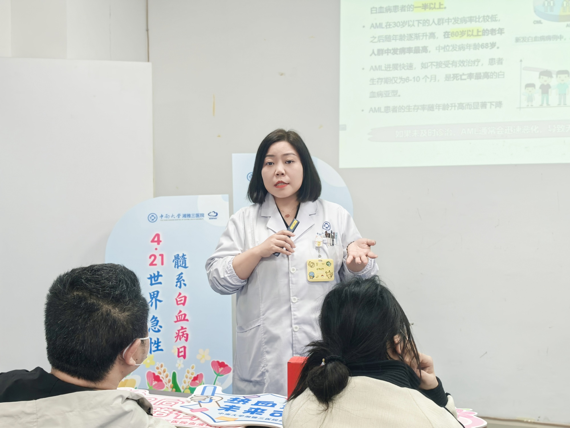 4月21日下午,在第32届全国肿瘤防治宣传周及世界急性髓系白血病日到来之际,中南大学湘雅三医院血液内科举办“髓爱新生·精彩生活”主题科普宣教活动。本次活动采取线上线下同步进行的方式,血液内科主任李昕教授担任会议主席并致辞,李颖副教授、阮春红护士长分别作专题科普讲座,并特邀病友志愿者分享居家康复经验,为患者及家属带来了一场温暖而实用的健康课堂。