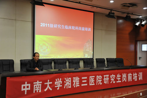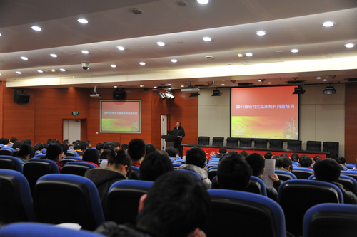 2月22日-23日,研究生部举办2011级研究生临床轮科岗前培训,内容包括医学人文精神、廉政文化、医学生心理健康、医疗安全与核心制度、病历书写规范、医院数字化管理等。培训由副院长黄飞舟、研究生部副主任袁秀洪主持,院领导罗爱静、陈方平、吴希林、邓云龙出席。2011级146名硕士研究生及36名博士研究生参加了培训。