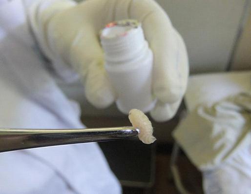 非洲大陆有很多国内没有的寄生虫病,作为一名外科医生,这种病我还是第一次看到。当时心里纳闷,这会不会就是传说中的芒果蝇感染啊?于是上网查阅资料,找到几张芒果蝇感染人体的幼虫图片,一对比,果然非常相似,我心里有了九成的把握,对患者说很可能是芒果蝇感染,这种病主要是造成皮肤病变,不用太担心。考虑到当地的医生应该见过不少芒果蝇感染患者,我们想到了一个在中国留过学的黑人医生OTI。当天是周末,她不上班。与医疗队肖湘成队长驱车来到OTI家,请她一起看病人。当她一见到药瓶中虫子,就肯定地说,你们的诊断很正确,是芒果蝇幼虫。