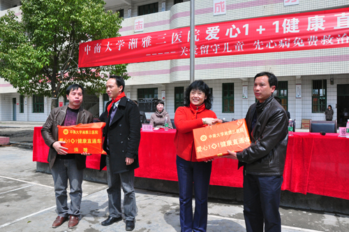 院党委副书记吴希林介绍,湘雅三医院“爱心1+1 健康直通车”是院党委和行政精心打造的“爱心”品牌,去年6月,“直通车”到达了湘西,开展了“关爱湘西留守儿童,让爱传递你我他”的义捐义诊活动,永顺县芙蓉镇保坪村46位的贫困留守儿童接受了爱心捐助。今天,我们又对新晃侗族自治县凉伞镇的119名留守儿童进行了爱心捐助,帮助他们实现了心中的愿望。今后,“爱心1+1健康直通车”将继续开往湖南边远穷困山区,开展与孩子们“手拉手、心连心”活动,帮助孩子们实现新的愿望。