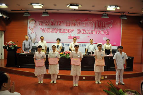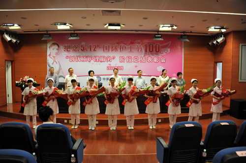 护理部主任丁四清作了题为《持续推进优质护理服务》的阶段总结。她从“改革工作模式,提高患者满意度;创新管理方式,提高护理品质;建立培训体系,提升护士能力;运用激励手段,形成长效机制”等四个方面作了“创优”工作的情况汇报,并介绍取得的阶段性成绩。医院自2011年3月全面启动“创优”工作,经过不懈努力,医院增补为卫生部重点联系医院并获得卫生部首批“万名护理人才培训项目医院”;普外一科30W获得卫生部第一批优质护理示范病房;医院进入卫生厅“优质护理服务先进单位”的候选医院。卫生部优质护理服务示范工程网、健康报、现代护理报、学校新闻网及校报对医院开展优质护理工作进行了专题报道。初步呈现了“患者满意、同行认可、领导支持、护士自信”的工作局面。她最后向全院护士发出倡议:向“最美护士”何遥学习,学习她以德报怨、见义勇为的大爱精神;学习她爱岗敬业、生命至上的职业操守;学习她心系病患、危急时刻挺身而出的责任意识,为了共同的护理事业,凝心聚力,谱写护理新篇章!