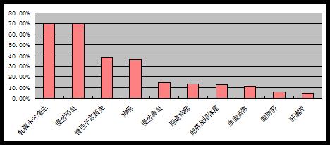 图-2女性参检者前十位疾病和阳性发现