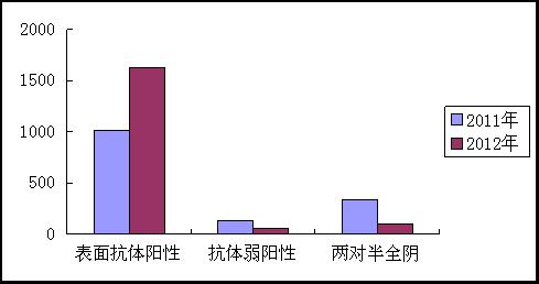 图-42011、2012年乙肝两对半体检结果情况