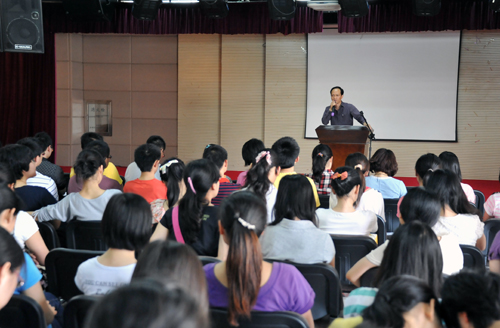 吴书记给大家介绍了湘雅的历史。湘雅前辈们创建湘雅这个品牌,靠的是湘雅精神。湘雅医学院的院训是“公勇勤慎、诚爱谦廉”,这八个字告诫湘雅人要如何做人,其中“廉”就是指廉洁。作为湘雅的传人、湘雅的学子,要牢记祖训,行医不能一心以营利为目的,君子爱财取之有道,要在社会的游戏规则中赚安心钱。年轻人生活压力固然很大,但不要越过道德的底线、公民的底线,我们湘雅人绝对不能迫于生活的压力而去做违法犯罪的事情。吴书记叮嘱大家:了解湘雅的历史是要在以后的行医路上仔细体会湘雅精神的内涵,了解如何作一名优秀的医生。