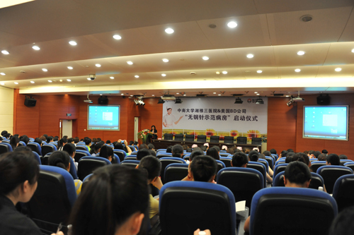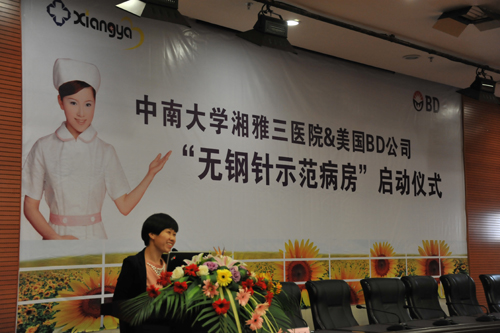 5月21日下午,湘雅三医院和美国BD公司合作项目“无钢针示范病房”启动仪式在医院二楼多功能厅隆重举行。静脉小组全体成员、各科质控组长、责任组长、教学组长、全体进修护士、全院护士长、护理部全体人员200余人参加本次会议,会议由护理部毛平副主任主持。