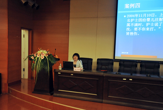 接着,谌永毅副院长从目前护患关系中存在的不良沟通现象切入,通过案例分析医院暴力事件的原因,包括政策层面、社会层面、患者层面的诸多原因,但也有医院方面、医务人员自身的因素。只有强化法律意识、规范投诉流程、健全协调机制才能构建和谐医疗体系。她向大家详细介绍了护患沟通基本知识、影响护患沟通九个因素、有效护患沟通的十个锦囊、住院过程中常用沟通模式、护患冲突中谈判艺术等五个方面。讲座近二个小时,与会人员学受益匪浅。谌院长强调,“你希望别人怎样对待你,你就要怎么样去对待别人”;“沟通从心开始”。她说,医患矛盾不是中国特产,而是整个人类社会发展中必然存在的矛盾。紧张的医患关系在欧美国家,同样存在。但是在国内,没有任何时候都没有比现在更难,更让医务人员活得没有尊严、没有安全感,但是“大难大智”,这发生的一切都预示着党和政府会重视,我们医务人员的从业局面一定会好起来。“优质护理服务是国家的需要、人们的需要,我们没有选择,必须接受挑战和机遇。我们不能改变别人,必须改变自己”。因而,医务人员必须加强医患沟通、护患沟通的学习,掌握有效沟通技巧,提高处理复杂关系的应变能力,提升日常工作中的服务水平。