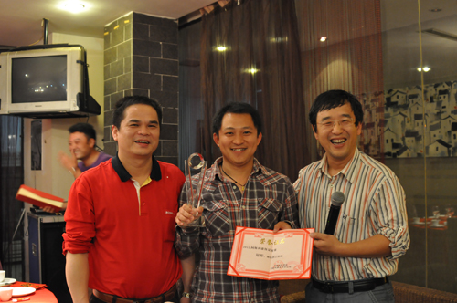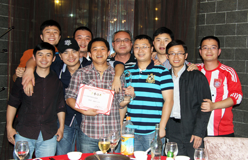 5月25日晚,2011年“阿斯利康杯”湖南省卫生系统足球赛颁奖晚宴在七彩江南酒店举行。湖南省医学会副秘书长阎翰,阿斯利康湖南大区经理龚湘勇,获奖球队球员代表20余人参加了颁奖晚宴。