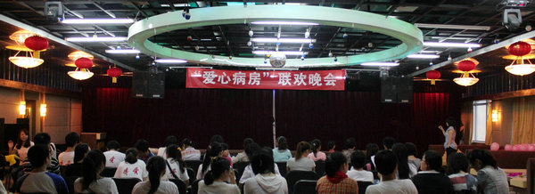2012年6月3日晚,中南大学湘雅三医院科技沙龙爱心涌动,“心怀感恩与爱同行”——第十一期“爱心病房”联欢晚会在这里温情上演。中南大学湘雅三医院团委李姗书记、钟磊老师以及部分团干部与志愿者们一同观看了整场晚会。
