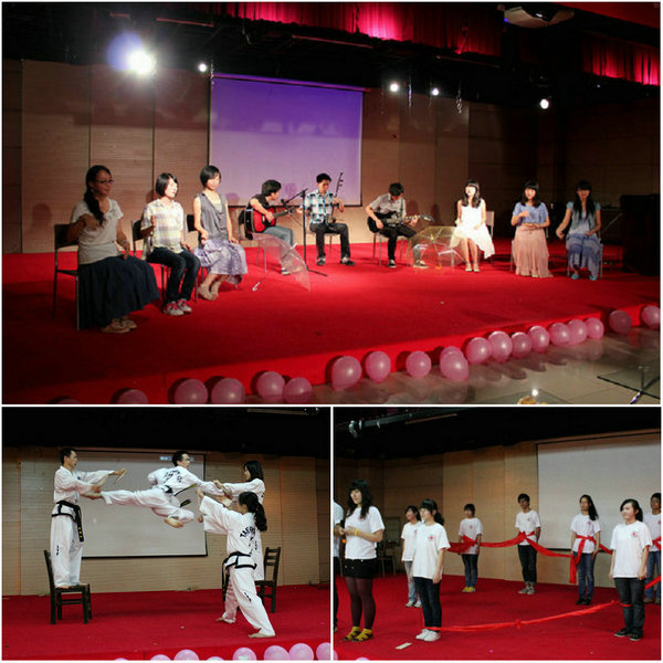晚会在一曲古朴典雅的《青花瓷》中拉开帷幕,伴随着悠扬的二胡,湘雅红十字会的同学们用浅浅吟唱和手语舞蹈带我们走入了江南烟雨朦胧的小镇。接下来的精彩节目更是让我们看到了不一样的医学生:原创歌曲吉他弹唱亲切纯朴;扇子舞表演《清风菊影》清新灵动;跆拳道及踢板表演刚柔并济;笛子独奏优美动听;情歌对唱甜美浪漫;手语舞蹈温馨感人。精彩的表演赢得了阵阵掌声。