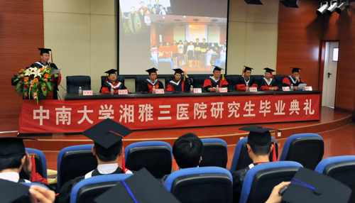 仪式由党委副书记邓云龙主持。据介绍,湘雅三医院2012届毕业的统招硕士研究生共116名,其中临床医学专业硕士研究生106名,学术型硕士研究生10名,博士研究生共17名,其中临床医学专业型博士16名,学术型博士1名。