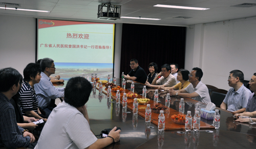 6月7日上午,由广东省人民医院党委书记曾国洪带队的一行14人考察团到湘雅三医院参观、学习、交流,重点考察湘雅三医院健康管理中心并就健康管理相关经验进行讨论。院领导朱晒红及医院社会服务部、健康管理中心、护理部、评价办等部门负责人亲切接待了考察团一行。