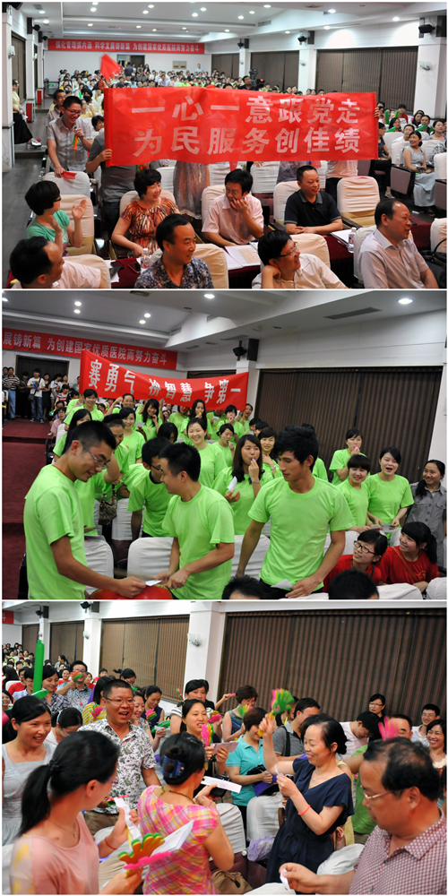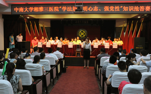 比赛前,医院党委书记罗爱静发言并为全体人员鼓劲。她首先感谢学校党委各部门领导对湘雅三医院党建工作的关心和支持,她说,在开展创先争优和争创学习型党组织活动如火如荼之际,医院举办此次活动,一是为了全面提高全院职工学法、知法、用法的积极性,提升大家作为公民的法律素养和道德修养;二是为了争创学习型党组织和学习型医院,以优异的成绩迎接卫生部三级医院复审;三是为了进一步发扬湘雅三医院人团结拼搏、乐于奉献的精神,向建党91周年献礼。