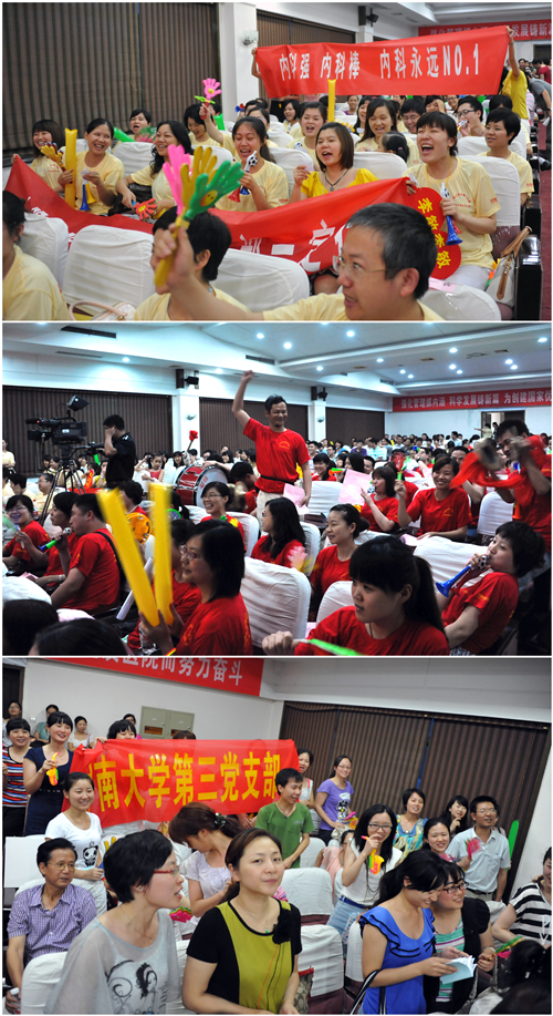 据了解,比赛这天正是中南“无会周”的第三天,偌大的会场里,没有往日开会的严肃与刻板,只有热情的呐喊和掌声。每个党支部组织了40人的方阵队伍,他们身着统一的服装,手持欢庆的道具,为各自队员加油、助威。大家以这种轻松而愉快的学习方式加深党员对法律法规和党建知识的了解,增强党员的党性意识。
