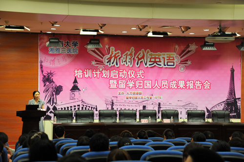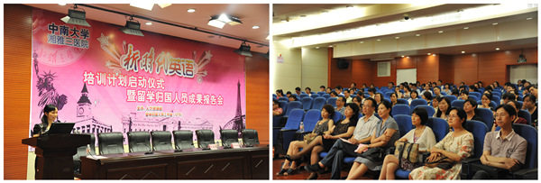 6月27日晚上7点,新时代英语培训计划启动仪式在湘雅三医院外科楼二楼学术报告厅举行。院领导罗爱静、邓云龙莅临指导,部分临床医技科室主任、职能部门负责人等出席了会议,全体OTS成员、125工程人才、英语培训班1—3期学员、研究生近200人参加了启动仪式。会议由人才培养办主任刘新春主持。