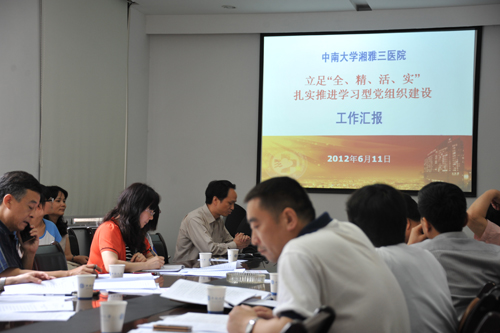 罗爱静书记在发言中说,湘雅三医院创建活动形成了“四大特色”,在校内外产生了“三大反响”。“四大特色”是:一是覆盖范围“全”,拓展了学习广度。坚持以党委中心组学习为龙头,以中层管理干部学习为纽带,以全体职工学习为基础,构建了全员学习的新机制,拓展了学习的覆盖面。二是学习内容“精”,提升了学习高度。坚持以政治理论为基础、以业务知识为重点、以文化管理等相关知识为补充,优化了教职员工的知识结构。三是学习形式“活”,增强了学习热度。坚持以重大活动和纪念日活动为契机,以“请进来”与“走出去”为主要方式,增强了组织学习的吸引力,提高了职工学习的热情。四是学习效果“实”,凸显了学习深度。医院在2011—2012年取得8大标志性成果:在2011—2012年卫生部大型医院巡查中,巡查组充分肯定了湘雅三医院在坚持公立医院的公益性、医院建设与发展、医疗服务、医疗安全、经济管理、行业作风建设等六个方面取得了十大显著成绩;普外一科30病室荣获全国首批优质护理示范病房;组建了国家重大新药创制GCP平台,医院首次获得国家重大专项支持;成功实现高端人才引进零的突破;特种医学团队获得国家一级学科博士点,实现了一级学科博士点零的突破;院党委荣获“湖南省普通高校先进基层党组织”;院团委荣获“全国五四红旗团委”;成功创建全国教科文卫体“模范职工之家”。“三大反响”是:一是得到中共湖南省委学习型党组织建设办公室的高度肯定,2012年4月28日第142期《中共湖南省委学习型党组织建设工作简报》,单篇刊发了题为《中南大学湘雅三医院立足“全、精、活、实”,扎实推进学习型党组织建设》的文章,向全省推介湘雅三医院经验;二是在红网、中国高校校报展示平台、中南大学新闻网、《中南大学报》等媒体,刊发了大篇幅文章,宣传了湘雅三医院开展“创建学习型党组织”等党建活动的成果。三是把创建学习型党组织示范点与申报党建理论课题相结合,成功申报了中南大学党建研究重点课题,推进学习型党组织建设的深入发展。