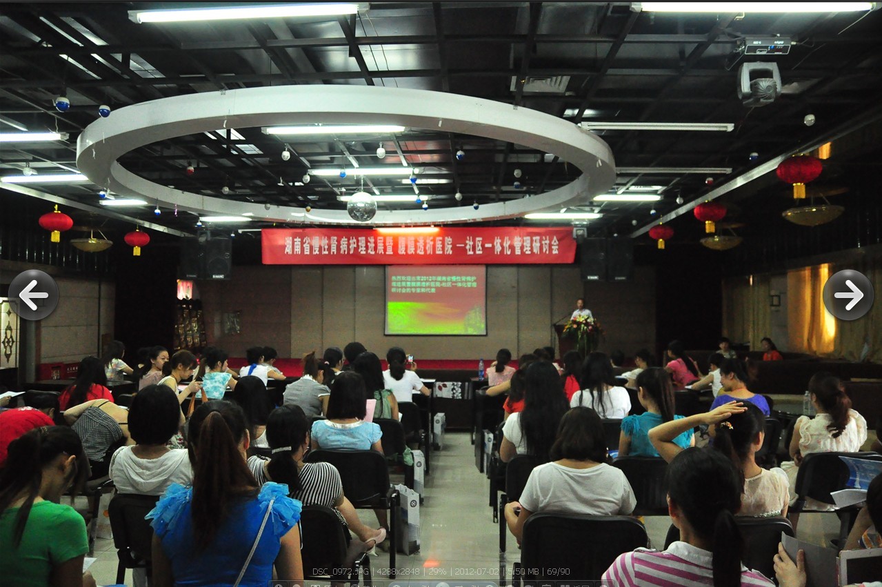 6月30日-7月1日,由湖南省护理学会主办,我院承办的湖南省2012年慢性肾病护理进展暨腹膜透析医院—社区一体化管理研讨会在湘雅三医院隆重召开。卫生部医学科学院卫生政策与管理研究中心主任王小万教授,院长助理范自力、医务部胡平安、社会服务中心赵颜忠出席会议。会议由湖南省护理学会血液净化护理委员会主任委员严谨主持。来自全省30余家医院、社区卫生服务中心的40余名代表齐聚一堂,共同研讨慢性肾脏病及腹膜透析护理中存在的难点、热点问题。