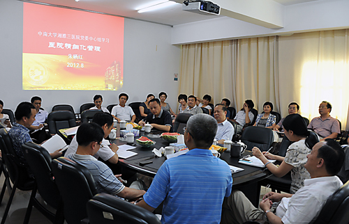 党委副书记吴希林凝练了医院精细化管理的目标即实现医院的优质管理,包括管理制度的科学化、管理流程的优质化、管理程序的标准化、管理载体的信息化、管理过程的效率化、管理结果的效益化。他还指出,湘雅三医院的党委中心组学习已形成了特色,并作为亮点之一在申报学校学习型党组织建设中深获好评。