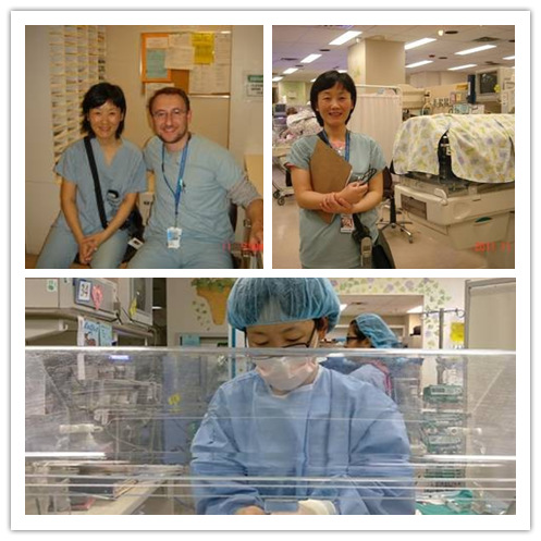 儿科黑明燕副教授于2011年5月-2012年6月在加拿大多伦多西奈山医院NICU进行了学习。通过一年多在北美顶级NICU的学习,她取得了加拿大安大略省行医执照,专业英语得到进一步提高,并发表专业论文3篇,其中SCI收录2篇,《中华儿科杂志》1篇,利用CNN数据,完成了临床课题一项;与此同时,她还与加拿大同行建立了深厚的友谊。她强调:专业素养和敬业精神是你获得机会和赢得尊重的基础;陌生的环境则有助于你塑造自信,平和心态。