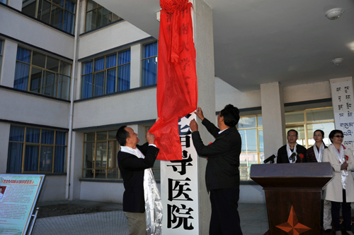 图为院长陈方平与西藏山南地区行署副秘书长张维“为中南大学湘雅三医院技术指导医院”揭牌。