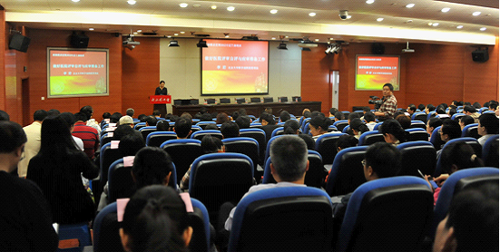 全体在院院领导、临床医技科室正、副主任、副高职称及以上人员、护士长、教研室正、副主任、行政后勤科室正、副主任、党支部书记、医务部及评审办全体成员、各科室评审工作联络员认真聆听了报告。
