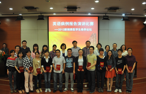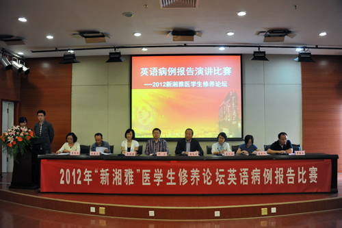 10月11日下午,研究生部在外科楼二楼学术报告厅举办了“2012年新湘雅医学生修养论坛——英语病例报告演讲比赛”。中南大学研究生工作部白毅部长、湘雅三医院主管研究生教育的黄飞舟副院长出席了会议,邓昊教授、黑明燕副教授、蒋卫红副教授、戴英波副教授、张如旭副教授担任本次比赛评委,李昊伦、冯茜两名研究生担任此次比赛的主持人。近200学生参加了此次活动。