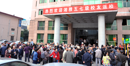 10月25日下午,阔别母校半个世纪的湘雅57级近150名校友重返母校,并到湘雅三医院分组进行参观。湘雅三医院举行了隆重的欢迎仪式。仪式由朱晒红副院长主持,院领导罗爱静、陈方平、吴希林参加了欢迎会。
