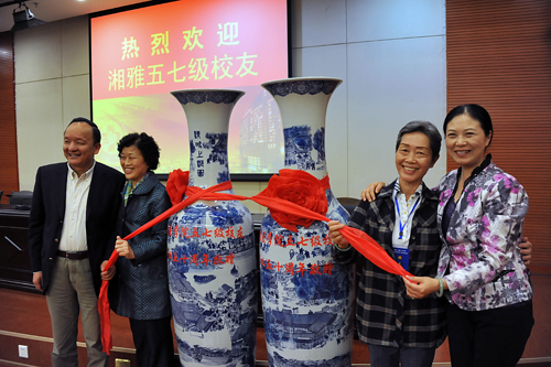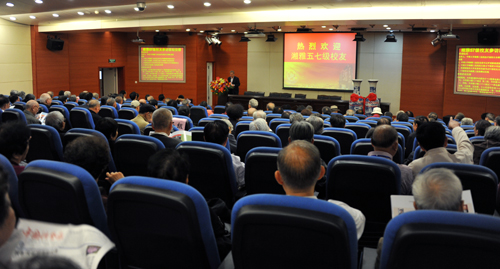 欢迎会现场气氛热烈。院党委书记罗爱静致欢迎辞,回顾了湘雅三医院20多年的风雨历程,代表医院2000多职工对57级校友们的到来表示热烈欢迎,57级校友中的杰出代表刘浔阳、李小如、张梦玺、李瑞珍等老专家为湘雅三医院做出了巨大的贡献,希望57级校友们能一如既往地支持母校,对湘雅三医院的工作进行指导。院长陈方平在讲话中介绍了医院各项医疗指标的发展和医院整体运行情况,他表示老一辈湘雅人奠定了今日的湘雅,他们的思想操守,他们的医术医道,构成了湘雅深厚的文化底蕴。每一个湘雅人都应该“继承湘雅传统,弘扬湘雅精神”,湘雅精神在湘雅三医院一定能够发扬光大。