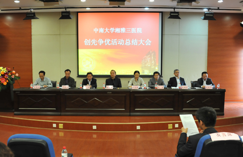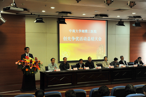 院党委副书记、工会主席邓云龙宣读了医院创先争优活动光荣榜,内容包括自2010年6月开展创先争优活动以来,湘雅三医院获得的国家级、省部级、校级以上的先进集体和先进个人名单。